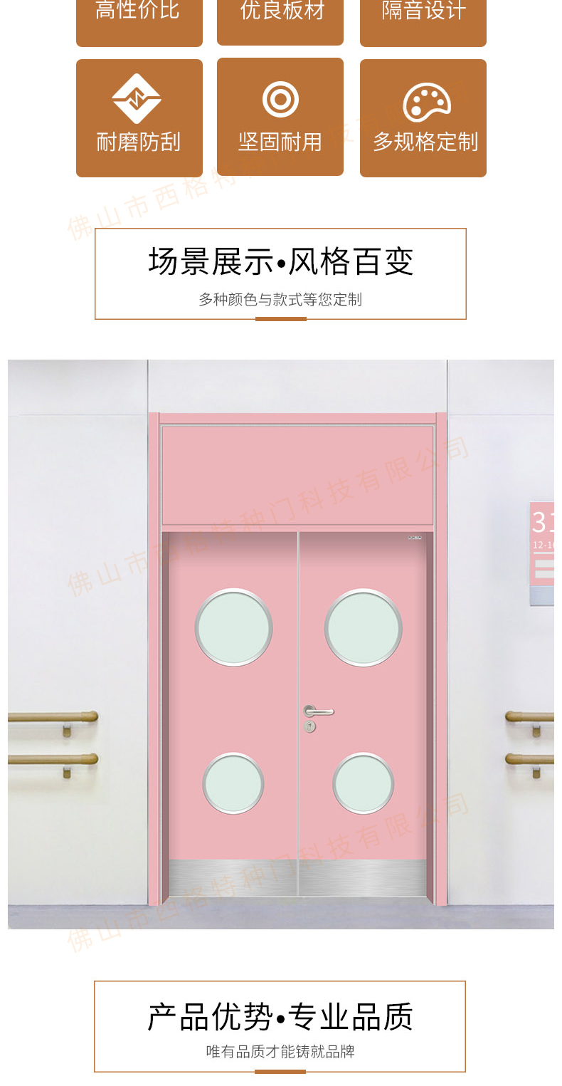 產品簡介:chnsige西格特種門,專業生產醫院門,醫院診室門,醫院辦公室門,醫院衛生間門,木質醫院門,鋼質醫院門,多鐘款式、顏色,尺寸可定制。